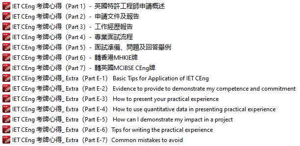 一次通過IET CEng Chartership,準備半年的全套複習資料及申請資料(送報告、文件及面試PPT模板)